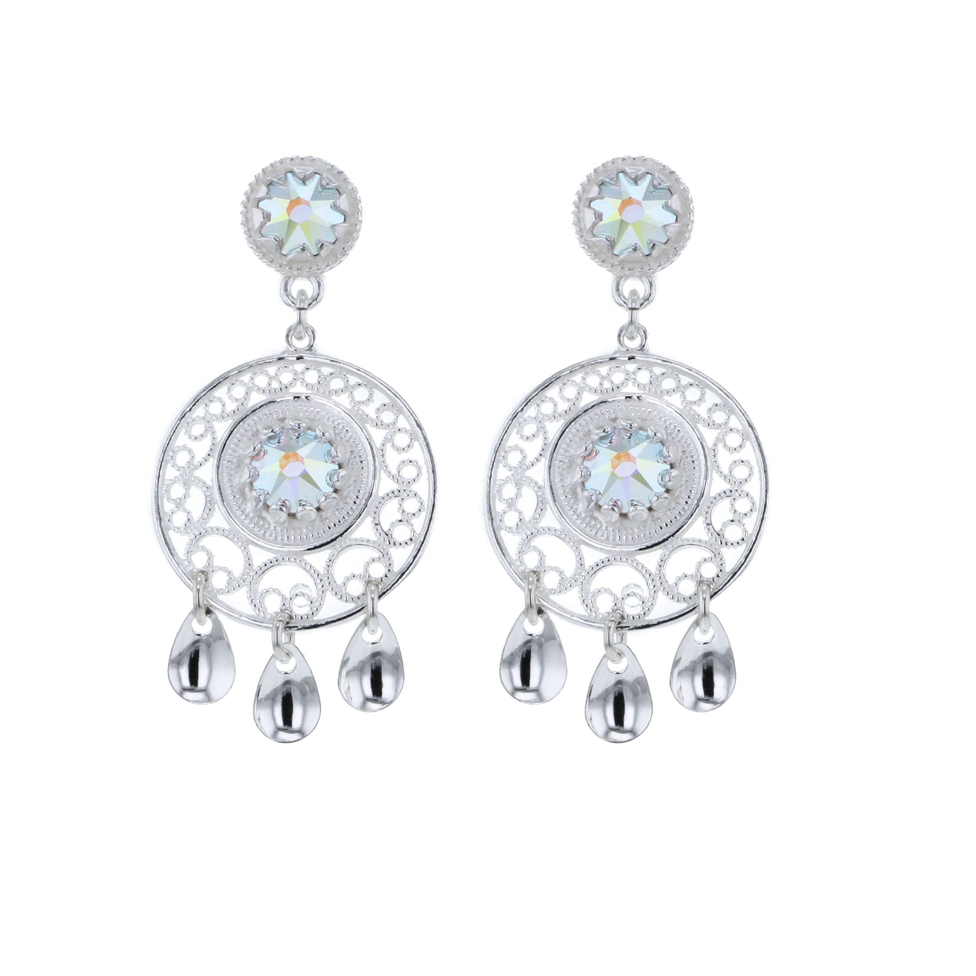 Tråd ørepynt med krystall og sjeibladlauv. D: 2 cm. L: 3,5 cm.