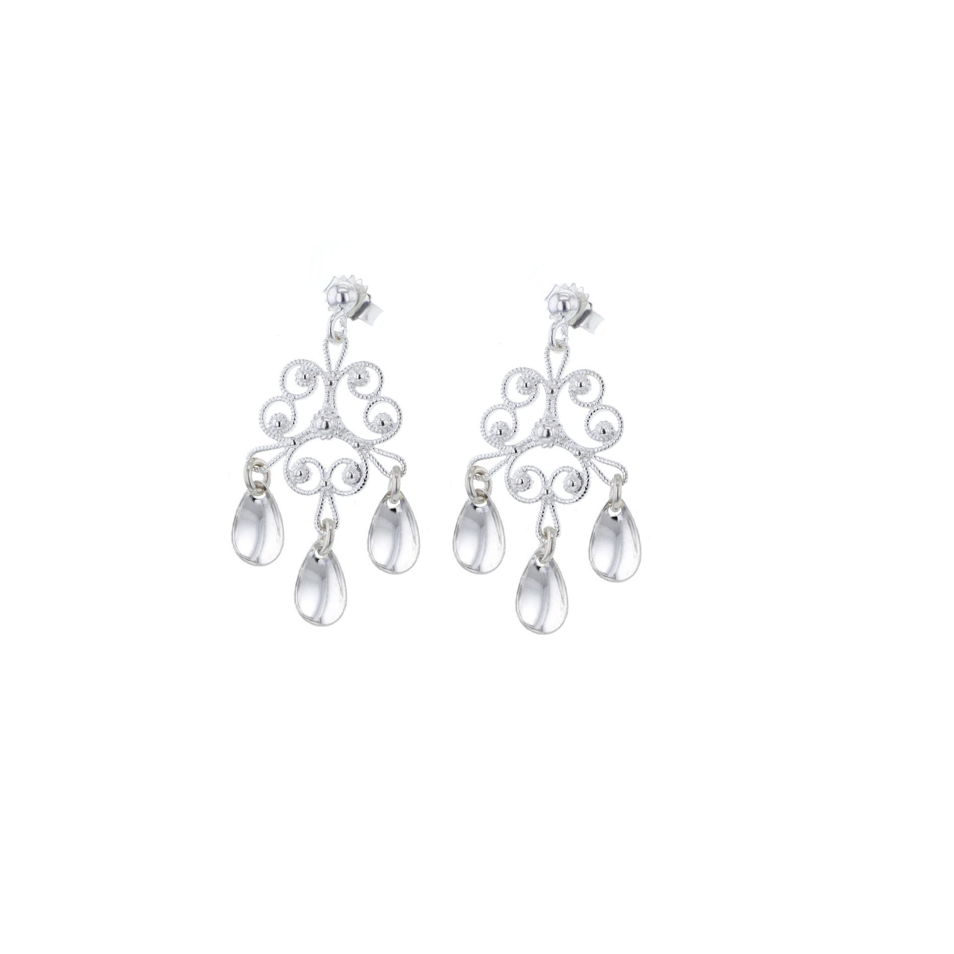 Store hengande øyredobbar i sølv med elegant, buet form. Designet har eit klassisk preg og passar godt til både bunad og andre festlege anledningar. Mål: 3 × 1,7 cm.