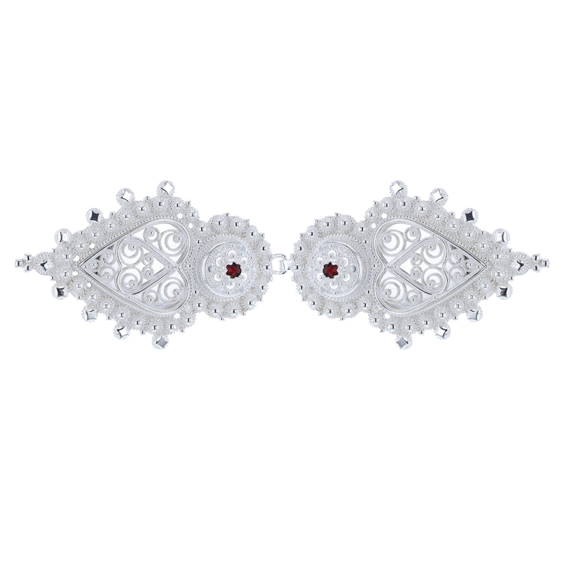 Stor filigranspenne med krystall i sølv. Denne er uten nål og sys på. Fint tilskudd til bunaden med vakre detaljar. Perfekt for deg som ønskjer å komplettere bunadsantrekket med eit varig og stilig sølvarbeid.