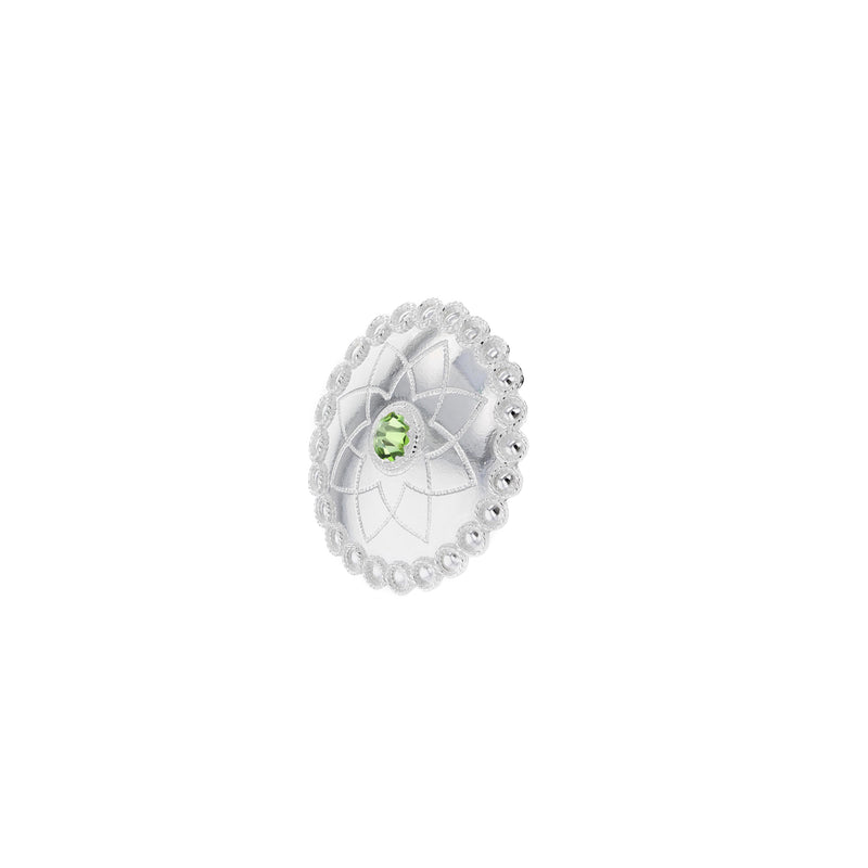 Gravert nål med krystall i midten. Du har moglegheit til å velje krystallfarge sjølv frå fargekartet, så nåla kan tilpassast akkurat din stil og drakt.