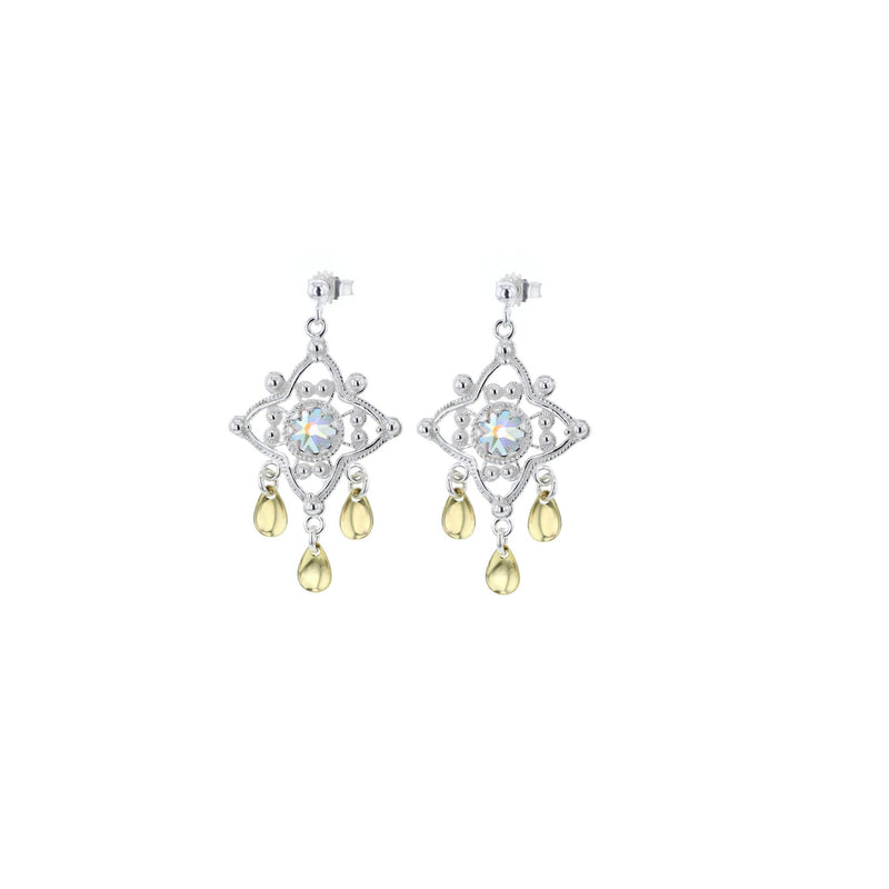 Ørepynt med krystall og lauv. Du har moglegheit til å velje krystallfarge sjølv frå fargekartet, så smykket kan tilpassast akkurat din stil og drakt.