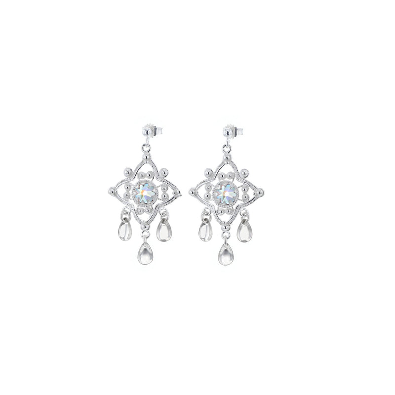 Ørepynt med krystall og lauv. Du har moglegheit til å velje krystallfarge sjølv frå fargekartet, så smykket kan tilpassast akkurat din stil og drakt.