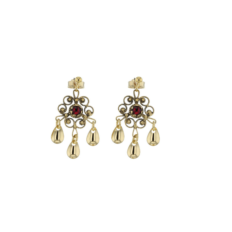 Ørepynt med lauv og krystall, antikkforgylt/forgylt