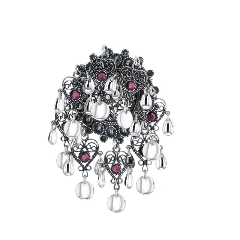 Sølje med hjarteheng og krystall, oksidert/sølv
